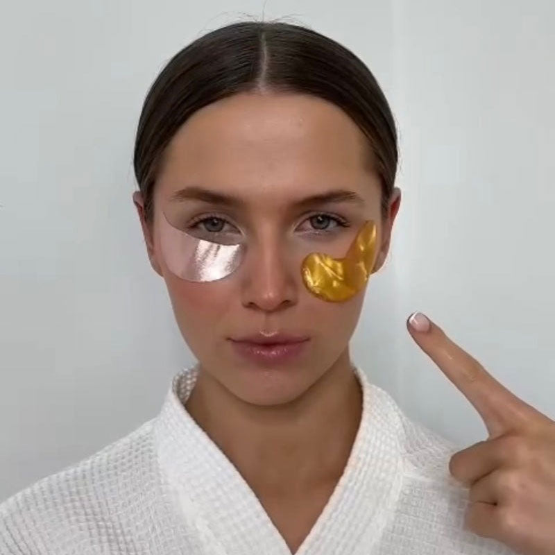 Our luxurious, rose gold eye patches really work!! Just look at the before and after just 10 minutes of use.
